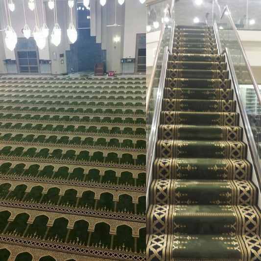 MADINA Luxury Olive Green with Gold Mosque & Masjid Carpet